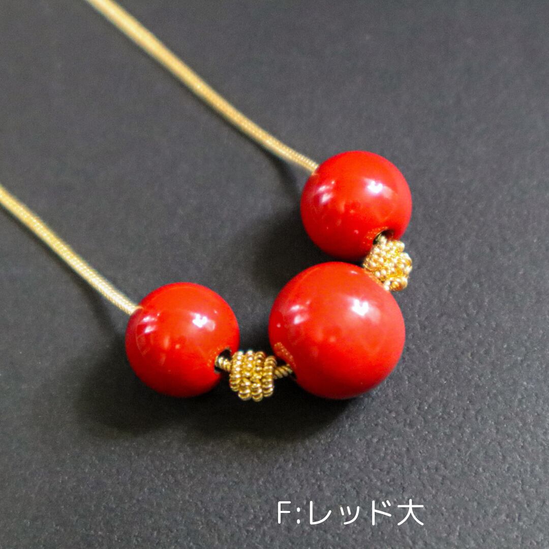 Aのみ2色の漆ビーズとなり、B~Fは同色のビーズを組み合わせていますが、