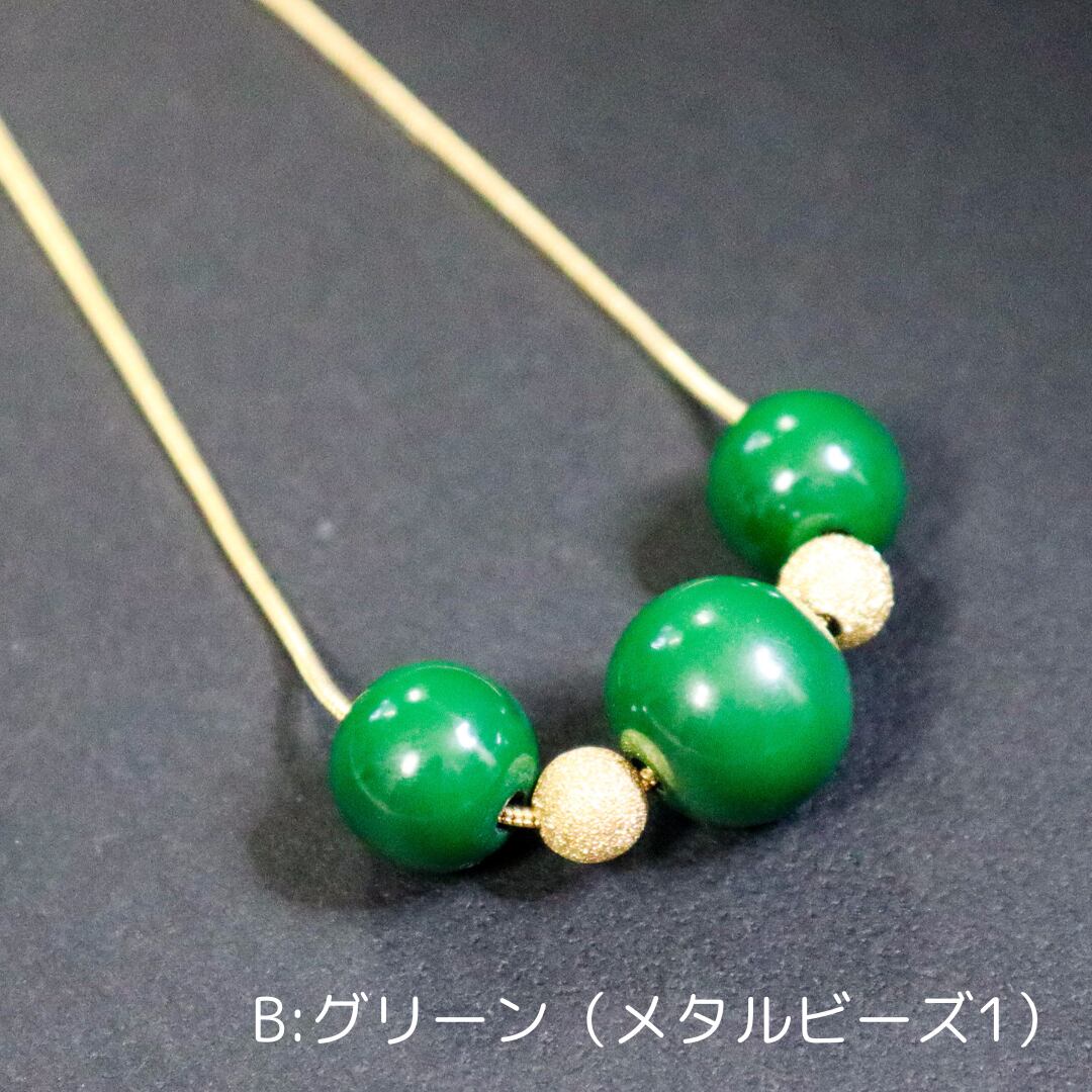 ビーズとビーズの間にあしらったパーツが、それぞれちょっとずつ違っています