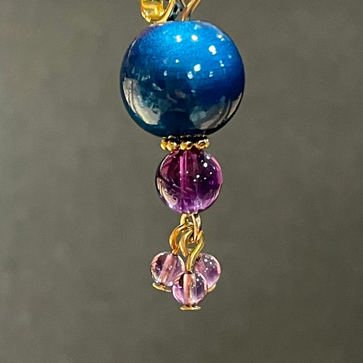 ・ブルー×アメジスト(イヤリング) 約4cm